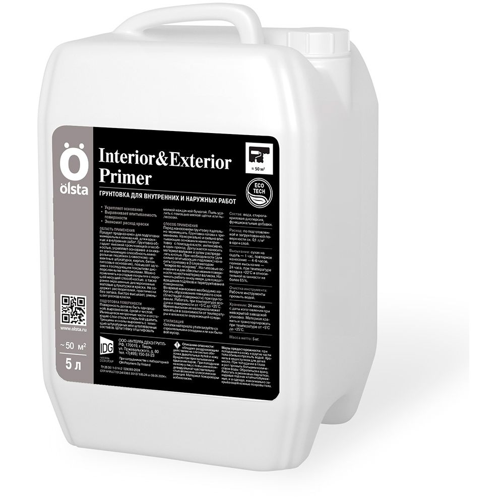 Доставка Грунтовка Olsta (Ольста) Interior Primer 5 л из Москва в районы и города Строительный рынок Славянский мир, 41-й км МКАД, бывшая Мельница, Тёплый стан, Коммунарка, Мосрентген, Видное, Мамыри, Одинцово, Подольск, Щербинка, Троицк, Красногорск, Домодедово, Московский, Краснознаменск, ЮВАО, ЮЗАО, ЮАО, Троицкий АО, Новомосковский АО